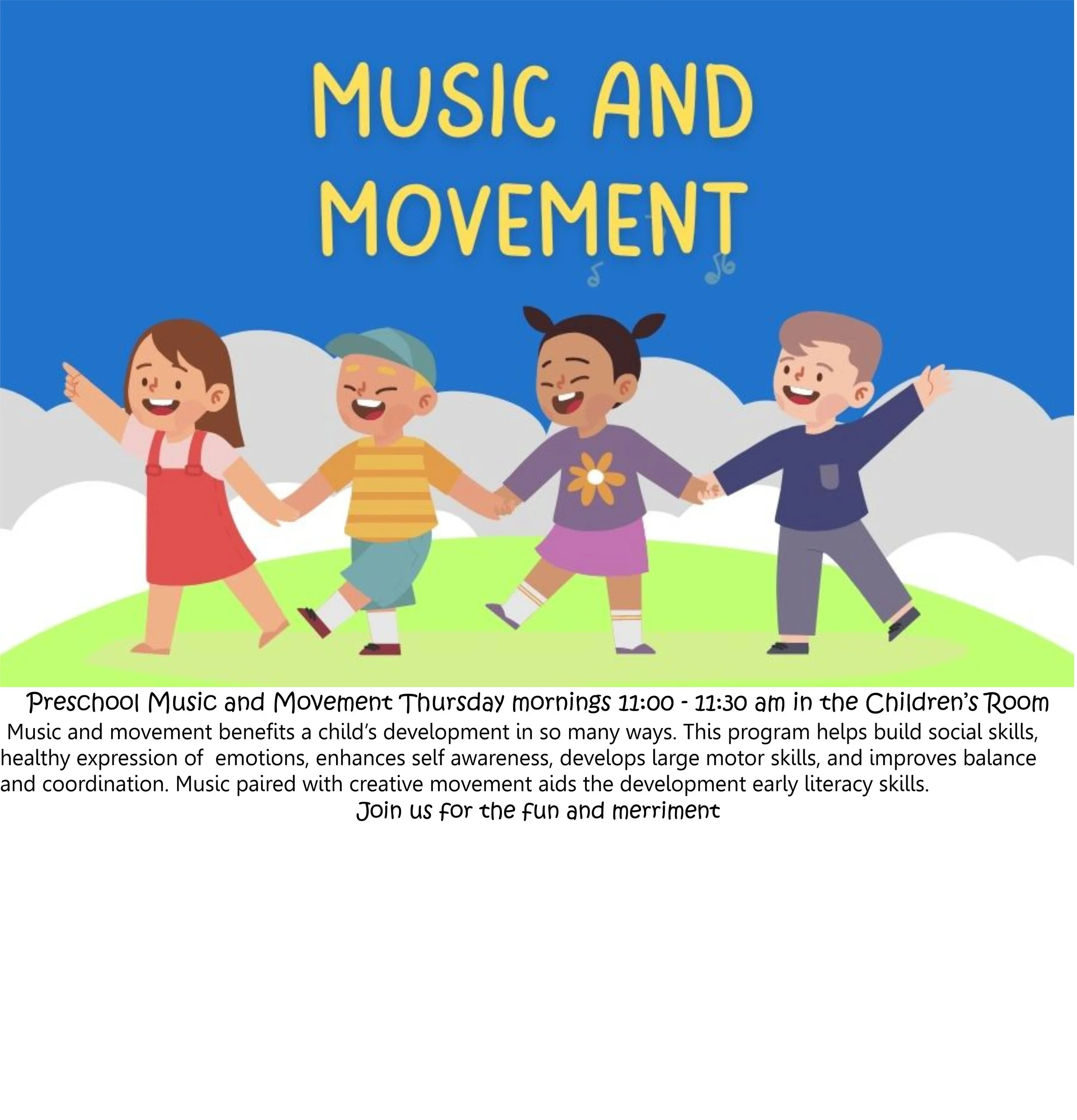 Music & Movement Thursday, May 9, 2024 11:00 AM 11:30 AM 11:00 11:30 Alexander Hamilton Memorial Free Library 45 East Main Street Waynesboro, PA, 17268 United States (map) Google Calendar ICS