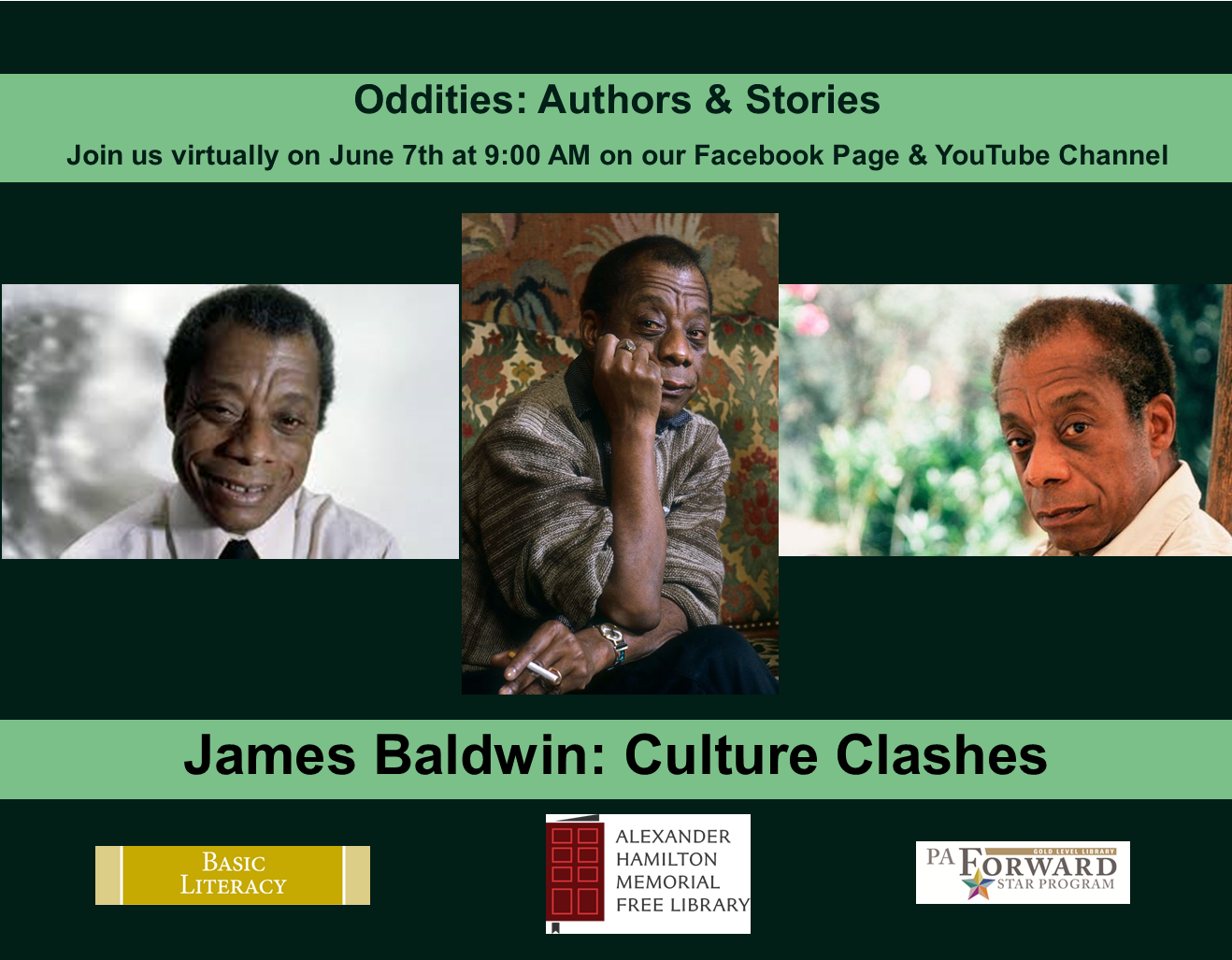 Join us virtually on our Facebook page or YouTube channel for our Oddities: Authors & Stories program. This month's topic is James Baldwin: Culture Clashes.