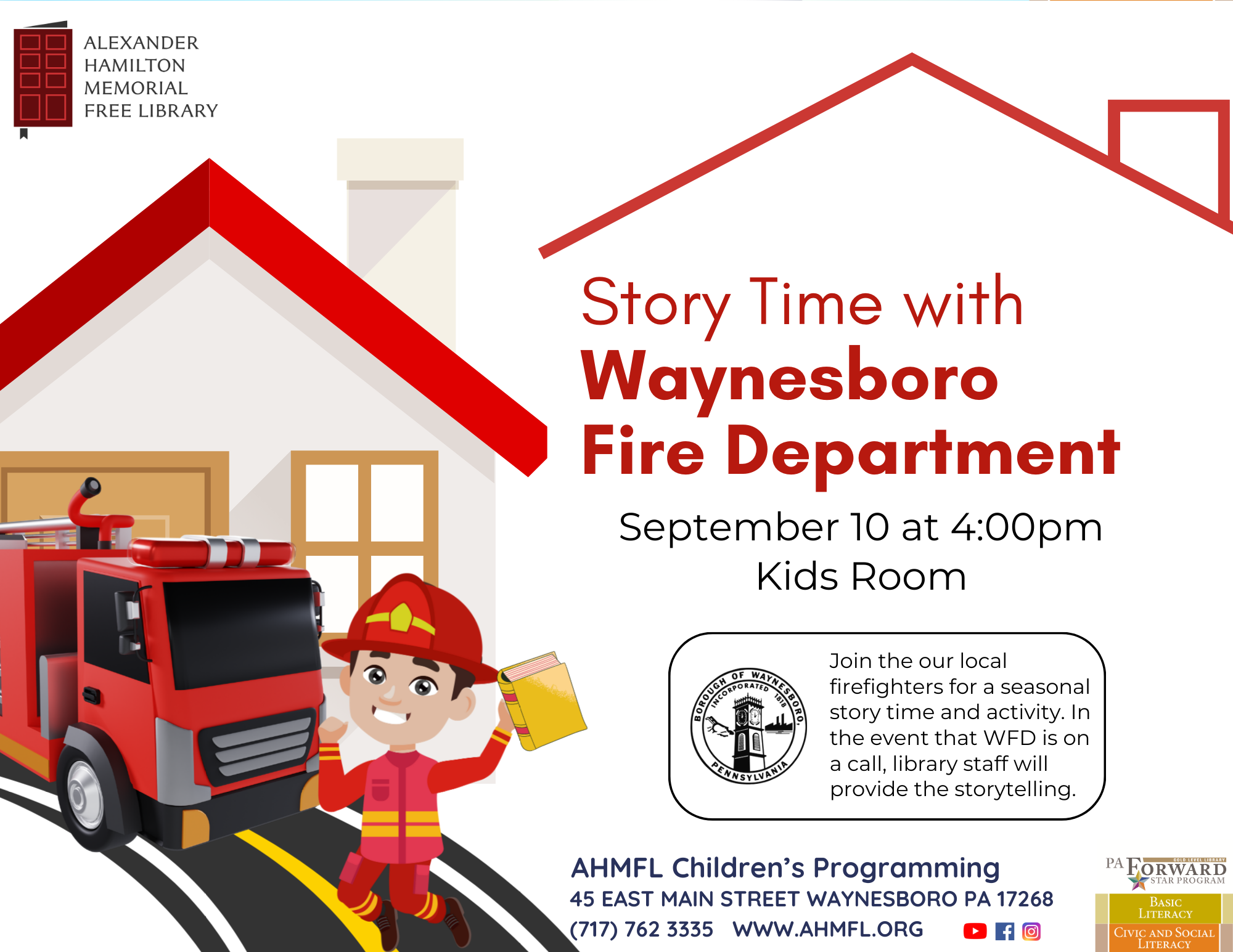 Join our local firefighters for a seasonal story time and activity. In the event that the WFD is on call, library staff will provide storytelling. This program is free and open to children grades PreK-5.